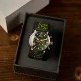 Bat Green, Dambuster Operation Catechism 80th Dual Time Chronograph, cesur RAF operasyonuna saygı duruşunda bulunan sınırlı sayıda üretilmiş bir saattir. 43 mm paslanmaz çelik kasası ve 22 mm yeşil deri kayışı ile dikkat çeker. Çift zaman dilimi özelliği, uluslararası seyahat edenler için idealdir. Mineral lens ve Japon quartz mekanizması ile güvenilir bir performans sunar. Bu saat, tarihsel bir mirası taşırken, şıklığı ve işlevselliği bir araya getirir.