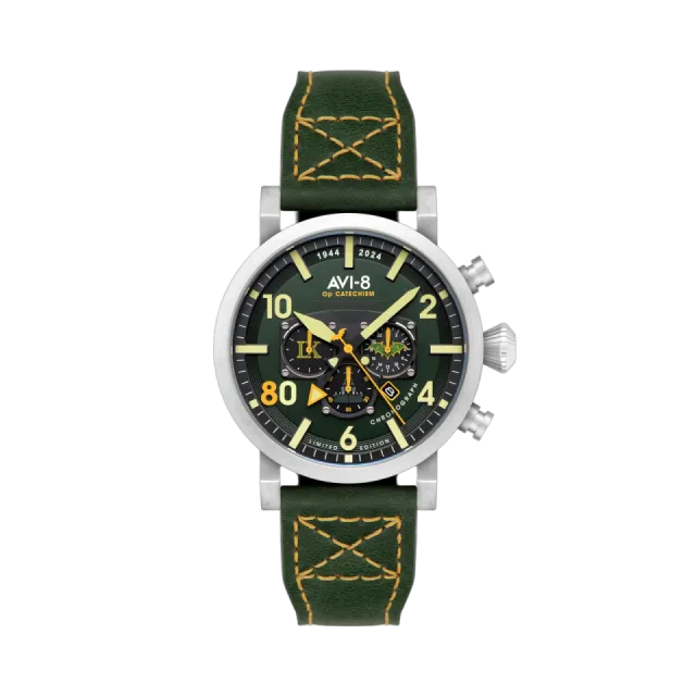 AVI-8 Dambuster Operation Catechism 80th Dual Time Chronograph Bat Green AV412402