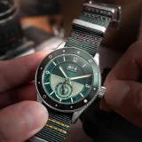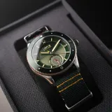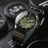AVI-8'in Flyboy Airmaster Sector Meca-Quartz modeli, klasik askeri pilot saatlerine modern bir yorum getiriyor. Yeşil sektörel kadranı, askeri uçakların işaretlerinden ilham alarak tasarlandı ve vintage havacılık estetiğini yansıtıyor. 40 mm paslanmaz çelik kasa, Japon Meca-quartz hareketi ve 24 saat fonksiyonu ile hassasiyet sunuyor. Dayanıklı mineral cam ve 20 mm yeşil naylon kayış, saatin hem şık hem de fonksiyonel olmasını sağlıyor.