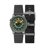 Tropical Grey | Flyboy Wingman Worldtimer GMT Automatic, AVI-8'in pilot saatlerinden ilham alarak tasarlanmıştır. Bu şık saat, 24 farklı zaman dilimini gösteren çok katmanlı bir kadrana sahiptir. Paslanmaz çelik kasa ve safir cam ile dayanıklılığı artırırken, 22 mm genişliğindeki gerçek deri kayışı ile zarif bir görünüm sunar. Suya dayanıklılığı 5 ATM olan bu otomatik saat, her maceranızda doğru zamanı sunar.