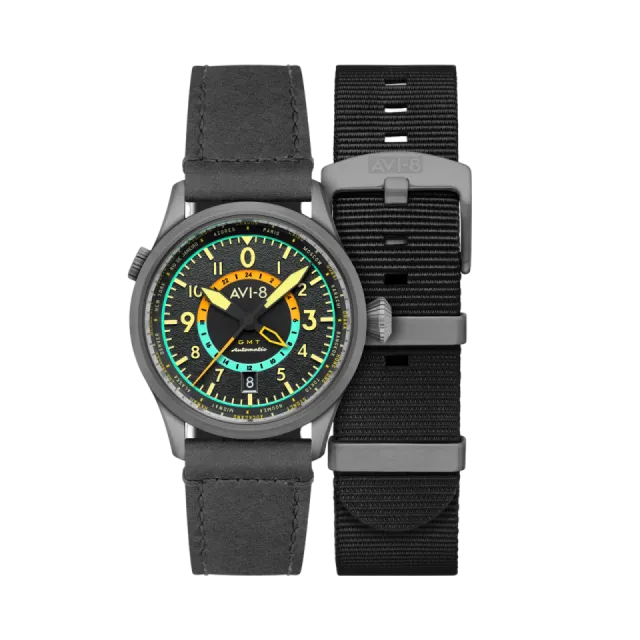 AVI-8 Flyboy Wingman Worldtimer GMT Automatic Tropical Grey AV412004