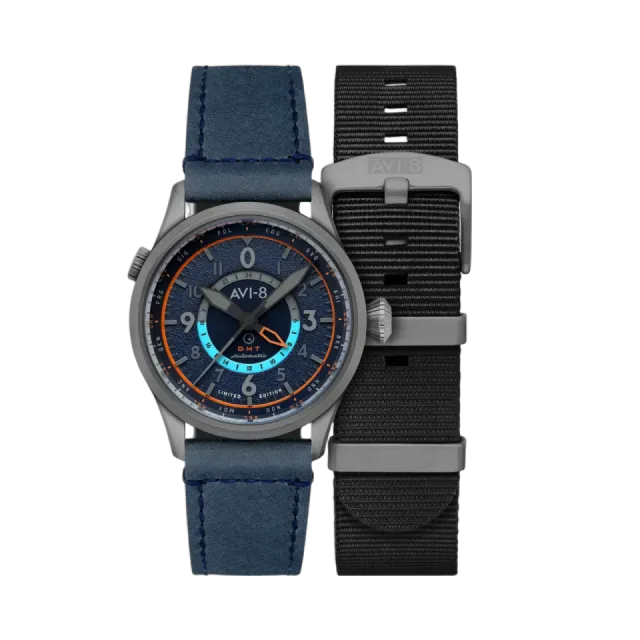 AVI-8 Flyboy Wingman Worldtimer GMT Automatic Stealth Blue AV412007