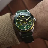 Fuselage Green | Flyboy Airmaster GMT Automatic, macera tutkunları için tasarlanmış bir saat. Modern estetiği, klasik havacılık tasarımıyla birleştiriyor. NH34 Japon otomatik GMT hareketi sayesinde üç zaman dilimini takip edebilir. 40 mm paslanmaz çelik kasa ve konforlu deri kayışı ile hem şehirde hem de uluslararası yolculuklarda mükemmel bir yol arkadaşı. Anti-refleksiyon kaplamalı safir camı ve suya dayanıklılığı ile her anınıza eşlik etmeye hazır.