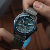 Flyboy Airmaster GMT Automatic Rubber Black, global maceralar için tasarlanmış bir saat. Modern estetiği, klasik havacılık tasarımıyla birleştiriyor. NH34 Japon otomatik GMT hareketi sayesinde üç farklı zaman dilimini takip edebilir. 40 mm paslanmaz çelik kasa ve 20 mm gri deri kayış ile konfor sunar. Anti yansıma kaplamalı safir camı, dayanıklılığı artırırken, 5 ATM su geçirmezlik özelliği ile her koşulda yanınızda. Maceralarınıza eşlik edecek bu şık saat, stil ve hassasiyeti bir arada sunuyor.