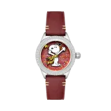 Doghouse Red | Flyboy Airmaster 40 Meca-quartz, AVI-8'in Peanuts Snoopy serisinin özel bir parçasıdır. Sadece 400 adet üretilen bu saat, Snoopy ve Woodstock'un eğlenceli dünyasını yansıtır. 40 mm paslanmaz çelik kasa, kırmızı kadran ve 22 mm gerçek deri kayış ile şıklığı bir araya getirir. Japon Meca-quartz mekanizması, 5 ATM su geçirmezlik ve anti-refleksiyon kaplamalı mineral cam ile donatılmıştır. Her detayıyla nostaljik bir yolculuğa davet ediyor.