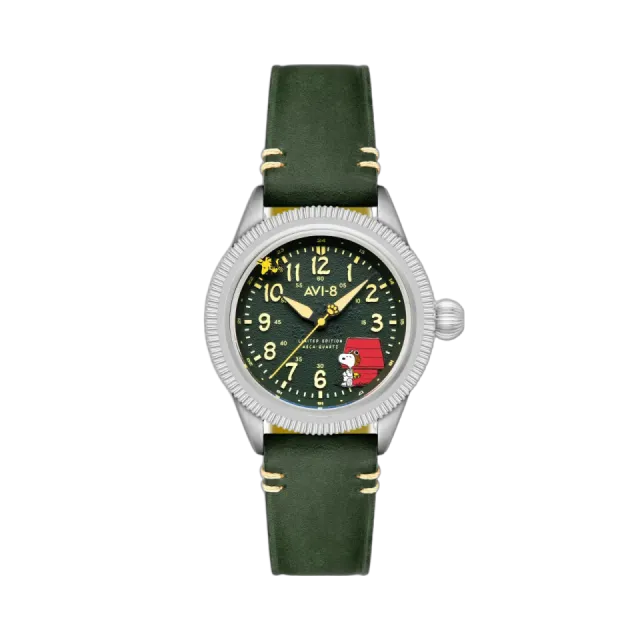 AVI-8 Flyboy Airmaster 40 Meca-Quartz Peanuts Snoopy Flying Ace Limited Edition Doghouse Green AV413901