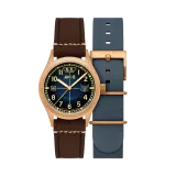 Southend | Flyboy Eagle Squadron Automatic Bronze 85th Limited Edition, 175 adetle sınırlı bu özel saat, II. Dünya Savaşı öncesi RAF ile birlikte savaşan cesur Amerikan pilotlarına bir saygı duruşudur. 39 mm bronz kasa, mavi kadran ve UV ışığında ortaya çıkan gizli yazı ile dikkat çeker. Japon otomatik mekanizması, dayanıklı safir camı ve iki farklı deri kayışı ile hem şık hem de fonksiyonel bir tasarım sunar. Her detay, savaş zamanının cesaretini ve direncini yansıtır.