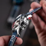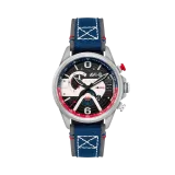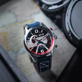 Hawker Harrier Dual Retrograde Chronograph Admiral Black Steel, havacılık tarihinin ikonik simgelerinden ilham alarak tasarlanmıştır. 44 mm paslanmaz çelik kasa, Japon Quartz mekanizması ve 5 ATM su geçirmezlik özelliği ile dikkat çeker. Siyah kadranı, Swiss Newlite ile uygulanan indeksler ve anti-refleksiyon kaplamalı mineral cam ile birleşerek şıklığı ve fonksiyonelliği bir araya getirir. 22 mm mavi deri kayışı, zarif bir görünüm sunar.