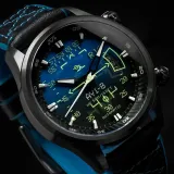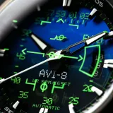 Gradient Blue | Hawker Harrier HUD Automatic, AVI-8 Timepieces'in göz alıcı tasarımı, havacılığın en son teknolojisi olan head-up display (HUD) sistemlerinden ilham alıyor. 44 mm paslanmaz çelik kasa, mavi degrade kadran ve Swiss Newlite ile aydınlatılmış indeksler, saatin karmaşık uçak enstrümantasyonunu yansıtmasını sağlıyor. 5 ATM su geçirmezlik ve 2 yıl uluslararası garanti ile güvenilir bir seçenek sunuyor. Hem şık hem de işlevsel bir zaman parçası arayanlar için ideal.