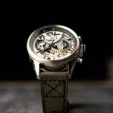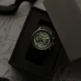 Storm Grey | Hawker Harrier Matador Chronograph, havacılığın ikonik "Jump Jet" Harrier'ına selam duran bir tasarıma sahip. 44 mm paslanmaz çelik kasa, 5 ATM su geçirmezlik ve Japon quartz mekanizması ile donatılmıştır. Gümüş renkli kadranı ve 22 mm yeşil gerçek deri kayışıyla şıklığı ve işlevselliği bir araya getirir. Matador, güçlü bir mirası bileğinize taşırken, her macerada yanınızda olacak bir saat.