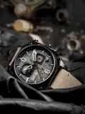Hawker Hunter Retrograde Chronograph, Sea Gray, tasarımıyla dikkat çeken bir saat. Bu model, ünlü jetin kokpitini ve enstrüman panelini bileğinize getiriyor. 45 mm paslanmaz çelik kasa, 22 mm gri deri kayış ve Japon Quartz mekanizması ile hem şık hem de işlevsel. Mineral cam ve Swiss Newlite indeksler, saatin okunabilirliğini artırırken, 5 ATM su geçirmezlik özelliği ile günlük kullanıma uygun. Askeri estetiği modern bir dokunuşla buluşturan bu saat, her anınıza zarafet katacak.