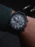 Hawker Hunter Retrograde Chronograph, Tactical Black, şıklığı ve işlevselliği bir araya getiriyor. 45 mm paslanmaz çelik kasa, 12 mm kalınlık ve 5 ATM su geçirmezlik ile dayanıklılığı ön planda tutuyor. Japon Quartz mekanizması sayesinde hassas zamanlama sunan bu saat, askeri jetin kokpitini bileğinize taşıyor. Gri kadranı ve uygulamalı indeksleri ile dikkat çeken bu model, her ortamda stilinizi tamamlayacak mükemmel bir aksesuar.
