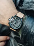 Scarlet Black Brown, AVI-8'in Hawker Hunter Avon Chronograph modeli, Rolls Royce'un Avon turbojet motorundan ilham alarak tasarlanmıştır. 45 mm paslanmaz çelik kasa, 22 mm kahverengi gerçek deri kayış ve mineral cam ile donatılmıştır. Japon Quartz mekanizması ile yüksek hassasiyet sunan bu saat, 5 ATM su geçirmezlik özelliği ile günlük kullanımda güvenilir bir seçenektir. Şıklığı ve fonksiyonelliği bir araya getiren bu model, her erkeğin koleksiyonunda yer almayı hak ediyor.