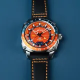 Orangish Red | Hawker Hunter Atlas GMT Automatic, AVI-8 Timepieces'in ikonik tasarımıyla dikkat çekiyor. 44 mm paslanmaz çelik kasa, 14 mm kalınlık ve 22 mm siyah deri kayış ile şıklığı ve dayanıklılığı bir araya getiriyor. Japon otomatik GMT mekanizması, seyahat edenler için üç zaman dilimini takip etme imkanı sunuyor. Uygun fiyatlı lüks arayan havacılık tutkunları için mükemmel bir seçim. Her detayında mükemmellik ve zarafet barındırıyor.