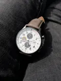 Hawker Hurricane Classic Chronograph, IIvory Grayscale modeli, II. Dünya Savaşı'nın en ikonik uçaklarından birine selam duruyor. Temiz ve cesur hatlarıyla dikkat çeken bu saat, beyaz kadranı üzerinde yer alan renkler ve grafiklerle, Hawker Hurricane'ın sade ama çarpıcı motifini yansıtıyor. 43.5 mm paslanmaz çelik kasa, Japon Quartz mekanizması ve 22 mm gri deri kayışı ile hem şık hem de dayanıklıdır. 5 ATM su geçirmezlik özelliği ile günlük kullanım için idealdir.