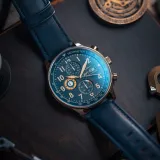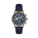 Hawker Hurricane Classic Chronograph Regent Blue, II. Dünya Savaşı'nın en ikonik uçaklarından birine selam duran bir tasarıma sahip. 43.5 mm paslanmaz çelik kasa, mavi kadran ve 22 mm gerçek deri kayış ile şıklığı ve dayanıklılığı bir araya getiriyor. Japon Quartz mekanizması ile hassas zamanlama sunan bu saat, sade ama etkileyici grafiklerle donatılmıştır. 5 ATM su geçirmezlik özelliği ile günlük kullanımda güvenilir bir dosttur.