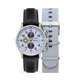 Hawker Hurricane Classic Chronograph, II. Dünya Savaşı'nın en ikonik uçaklarından birine selam duran bir tasarıma sahip. 43.5 mm paslanmaz çelik kasa, sade ve cesur hatlarıyla dikkat çekerken, gri kadran üzerindeki canlı renkler ve grafikler, uçağın etkileyici motifini yansıtır. Japon Quartz mekanizması ile güvenilir bir zaman ölçümü sunan bu saat, 5 ATM su geçirmezlik özelliği ve 22 mm siyah deri kayışıyla hem şık hem de dayanıklıdır. İki yıl uluslararası garanti ile birlikte gelir.