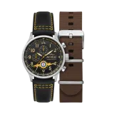 Hawker Hurricane Classic Chronograph, II. Dünya Savaşı'nın en ikonik uçaklarından birine selam duran bir tasarıma sahip. 43.5 mm paslanmaz çelik kasa, zarif ve cesur hatlarıyla dikkat çekerken, siyah kadran üzerindeki canlı renkler ve grafikler, uçağın etkileyici motifini yansıtır. Japon Quartz mekanizması ile güvenilir bir zaman ölçümü sunan bu saat, 5 ATM su geçirmezlik özelliği ve 22 mm gerçek deri kayışıyla hem şık hem de fonksiyonel bir aksesuar olarak öne çıkıyor.