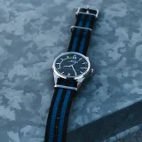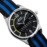 Blue Bound | Hawker Hurricane Wingman Day Date, AVI-8 Timepieces'in zarif bir tasarımıdır. Pilot saatlerinin estetiğini yansıtan kabak tarzı bir kurma kolu ile dikkat çeker. 38 mm paslanmaz çelik kasa, 11 mm kalınlık ve 5 ATM su geçirmezlik özelliği ile günlük kullanıma uygundur. Siyah kadranı, Swiss Newlite ile uygulanan indeksler ile aydınlatılmıştır. Dayanıklı 20 mm siyah naylon kayışı, RAF'ın en iyilerine bir saygı duruşu niteliğindedir.