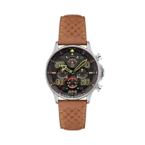 Baldwin | Hawker Typhoon Coningham Chronograph, II. Dünya Savaşı'nda Britanya 2. Taktik Hava Kuvvetleri'nin katkılarını onurlandıran özel bir tasarımdır. 42 mm paslanmaz çelik kasa, Japon Quartz mekanizması ve 22 mm kahverengi gerçek deri kayış ile dikkat çeker. Siyah kadranı, Swiss Super Luminous indeksler ile aydınlatılmıştır. Suya dayanıklılığı 5 ATM olan bu saat, hem şıklığı hem de tarihsel önemiyle öne çıkıyor.