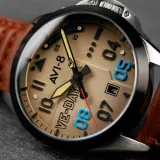 Victory Cream | P-51 Mustang Patriot Automatic, AVI-8'in 80. yıl sınırlı edisyonu ile tarih ve tasarımın buluştuğu bir saat. 43 mm paslanmaz çelik kasa, Japon otomatik mekanizma ve 5 ATM su geçirmezlik özelliği ile dikkat çekiyor. Krem rengi kadranı, zaferin sembolü olan 'V' harfiyle tasarlandı. Gerçek deri kayışı ve anti yansıma kaplamalı safir camı ile şıklığı ve dayanıklılığı bir arada sunuyor. Her detayında tarih barındıran bu saat, koleksiyonunuza değer katacak.