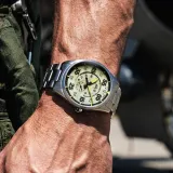 AVI-8'in en popüler pilot saatlerinden biri olan Spitfire Type 300 Automatic, güçlü malzemeleri ve derin görsel kontrastıyla dikkat çekiyor. 42 mm'lik kasa boyutuna sahip bu saat, özel rotor tasarımıyla donatılmış sergileme arka kapağı ile geliyor. Günlük kullanım için tasarlanmış olan bu modern pilot saati, havacılık mirasını yansıtarak, hem şıklığı hem de işlevselliği bir arada sunuyor. Suya dayanıklılığı ve yüksek kaliteli malzemeleri ile uzun ömürlü bir deneyim sağlıyor.
