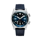 Aquascaphe Dual-Crown Blue, 39mm çapında otomatik bir dalış saatidir. 316L paslanmaz çelikten üretilen kasa, 200m su geçirmezlik sunarak su altı maceralarınıza eşlik eder. İçten ayarlanabilir bidireksiyonel bezel, dalış sürelerinizi güvenle ölçmenizi sağlar. Sunray mavi kadranı ve BGW9 Super-Luminova® ile karanlıkta mükemmel okunabilirlik sunar. Şıklığı ve dayanıklılığı bir arada sunan bu saat, her anınıza zarafet katacak.