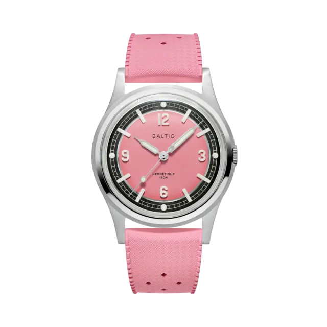 Hermétique Summer Pink, 37mm'lik zarif tasarımıyla dikkat çeken bir toolwatch. Paslanmaz çelik kasası ve çift kubbe safir camı ile hem dayanıklı hem de şık. 150m su geçirmezlik özelliği sayesinde her türlü aktiviteye uygun. Otomatik Miyota 9039 mekanizması, 42 saatlik güç rezervi sunarak güvenilir bir zaman ölçümü sağlar. Renkli kadranı ve değiştirilebilir kayış seçenekleri ile tarzınızı yansıtmanın en iyi yolu. Yazın enerjisini bileğinizde taşıyın!