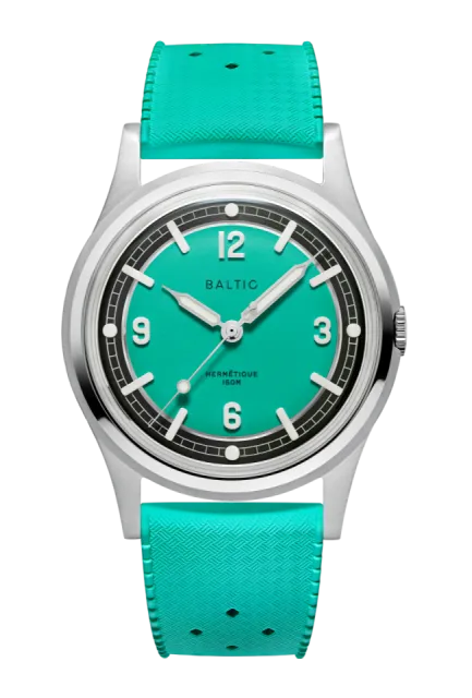 Hermétique Summer Turquoise, 37mm'lik zarif tasarımıyla dikkat çeken bir toolwatch. 316L paslanmaz çelik kasası ve çift kubbe safir camı ile hem dayanıklı hem de şık. 150m su geçirmezlik özelliği, her türlü aktivite için ideal bir seçim sunuyor. Otomatik Miyota 9039 mekanizması, 42 saatlik güç rezervi ile güvenilir bir performans sağlıyor. Renkli kadranı ve değiştirilebilir kayış seçenekleriyle, tarzınızı yansıtmanın en iyi yolu. Hem spor hem de şık bir görünüm arayanlar için mükemmel bir tercih.