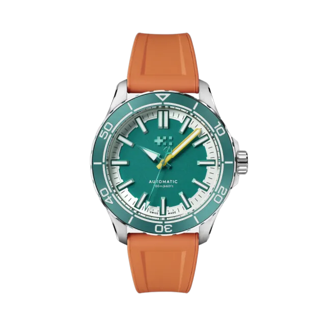 C60 Trident Reef, Christopher Ward'ın göz alıcı dalış saati, 44mm boyutuyla dikkat çekiyor. Chalice Green kadranı ve turuncu Aquaflex kauçuk kayışı ile su altı maceralarınıza renk katıyor. 200m su geçirmezlik özelliği ve Sellita SW200-1 otomatik mekanizması ile güvenilir bir performans sunuyor. Ayrıca, her satışın %2'si, okyanus koruma projelerine destek için Blue Marine Foundation'a bağışlanıyor. Renkli ve çevre dostu bir saat arayanlar için ideal bir seçenek!