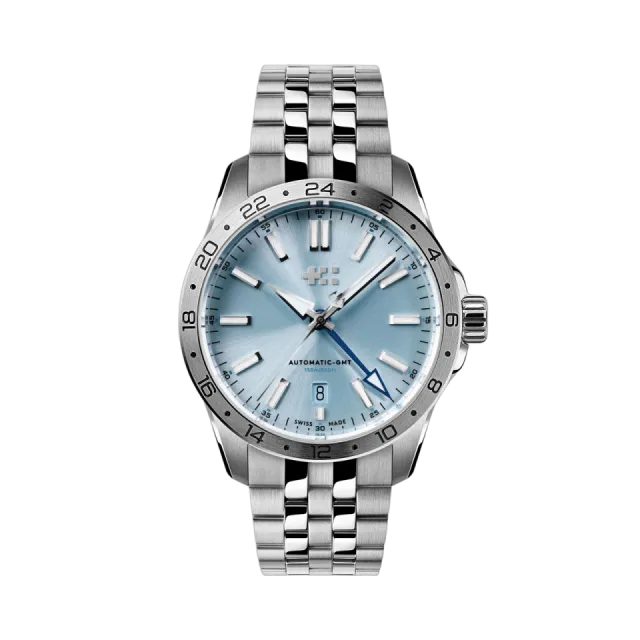 C63 Sealander GMT, Christopher Ward'ın göz alıcı Air Blue/Silver tasarımıyla dikkat çeken bir kol saatidir. 39mm boyutundaki bu otomatik GMT saat, 316L paslanmaz çelikten üretilmiştir ve 150m su geçirmezlik özelliği sunar. Sellita SW330-2 hareketi ile donatılan saat, ikinci bir zaman dilimini takip etmenizi sağlayan 24 saatlik sabit bezel ve dördüncü GMT eline sahiptir. Şıklığı ve konforu bir arada sunan Consort bileziği ile mükemmel bir uyum sağlar.