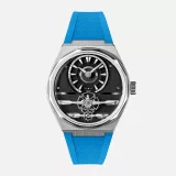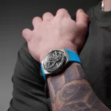 Christopher Ward'ın The C12 Loco modeli, 41mm çelik kasası ve el sarımı CW-003 kalibresiyle öne çıkan benzersiz bir spor saat deneyimi sunar. Özgün serbest salınımlı balans yayı ve 144 saat güç rezervi ile üstün hassasiyet sağlar. Siyah Ursa Black kadran ve mavi kauçuk kayış kombinasyonu modern tasarım ve üstün işçiliği buluşturuyor.