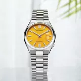 Citizen Tsuyosa NJ0150-56Z, zarif tasarımı ve üstün özellikleriyle dikkat çekiyor. Erkekler için özel olarak tasarlanan bu otomatik saat, dayanıklı paslanmaz çelik kasası ve gümüş rengi kordonuyla şıklığı garantiliyor. 40 mm kasa çapı ve safir camı ile sağlamlık sunarken, 5 ATM su geçirmezlik özelliğiyle günlük kullanıma uygun. Sarı kadranı ve tarih göstergesiyle göz alıcı bir stil sunan Citizen Tsuyosa, 40 saatlik güç rezerviyle de pratiklik sağlıyor.