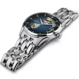 Hamilton Jazzmaster Open Heart Auto, 40mm paslanmaz çelik kasası ve canlı mavi dumanlı kadranıyla zarif bir tasarım sunar. H-10 otomatik mekanizması 80 saat güç rezerviyle üstün performans sağlar. Safir kristal cam, Nivachron denge yayı ve 5 bar su geçirmezlik özellikleriyle dayanıklılık ve şıklığı bir arada sunar.