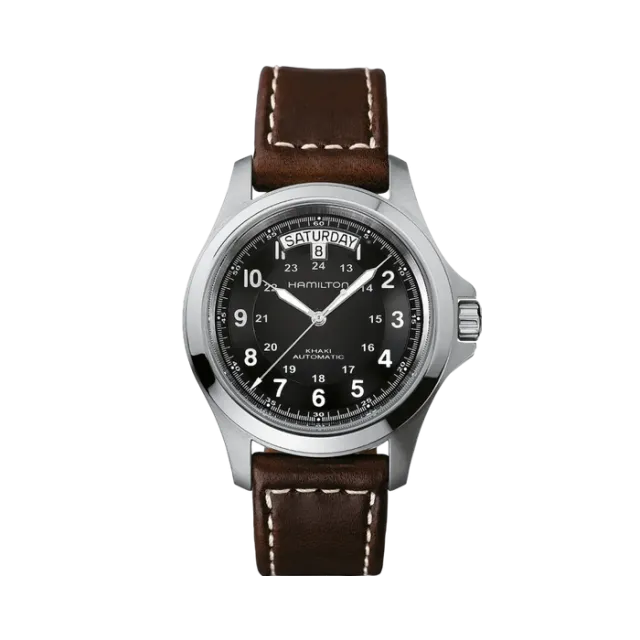 Hamilton'ın Khaki Field King Auto saati, benzersiz askeri mirasını modern tasarımla buluşturuyor. Siyah kadranı, 24 saat göstergesi ve 40mm paslanmaz çelik kasasıyla dikkat çekerken, 80 saatlik güç rezerviyle de günlük kullanım için idealdir. Kurma kolunun güvenliğini sağlayan özel muhafazası ile her an sizinle. Maceraperest ruhunuza hitap edecek bu şık saat, stilinize özgün bir dokunuş katmak için ideal.