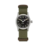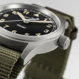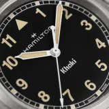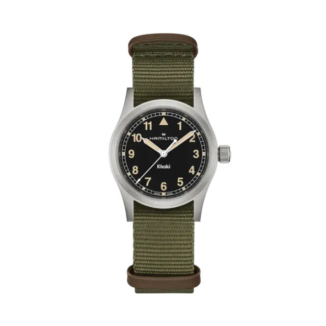 Hamilton Khaki Field Quartz 33mm, sadelik ve işlevselliği ile öne çıkan bir saat modelidir. Şık siyah kadranı, net tipografisi ve eskitilmiş radyum renkli Super-LumiNova® indeksleri ile estetik bir görünüm sunar. Bu saat, yeşil tekstil NATO kayışı ve kahverengi deri halkalarıyla, maceralarınızı tamamlayacak ideal bir seçenektir. Suya dayanıklılık özelliği ile her türlü hava koşulunda güvenilir bir ortaklık sağlar.