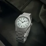Hamilton Khaki Field Mechanical 38mm, beyaz kadran ve paslanmaz çelik bileziğiyle dikkat çekiyor. Bu orijinal asker saati, özel H-50 elle kurmalı mekanizması sayesinde güvenilir ve sağlam bir performans sunuyor. 80 saatlik güç rezervi ile uzun süreli kullanım sağlarken, 5 bar suya dayanıklılığı outdoor maceralarınıza mükemmel bir partner oluyor. Stiliyle her zaman göz dolduran bu saat, modern yaşamın tempo ve dinamizmini yansıtıyor.