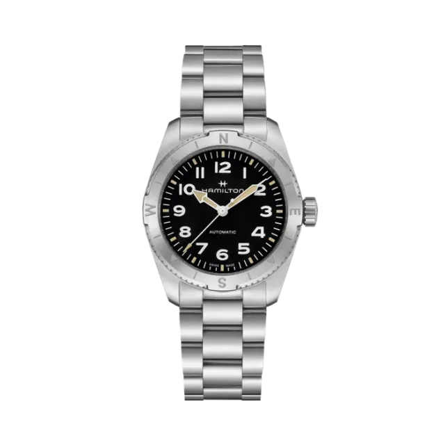 Kaşifler için tasarlanmış Khaki Field Expedition Auto, doğanın zorluklarına meydan okumanızı sağlayacak, 37 mm paslanmaz çelik kasa ile donatılmış bir macera saatidir. Güneş yardımıyla yön bulmanıza yardımcı olan pusula tasarımı ve Super-LumiNova kaplamalı siyah kadranı, her koşulda mükemmel okunabilirlik sunar. 10 bar su geçirmezlik seviyesi ile dayanıklılığını pekiştirirken, otomatik mekanizması 80 saat güç rezervi sunar. Hamilton kalitesi ile her serüvene hazır olun!