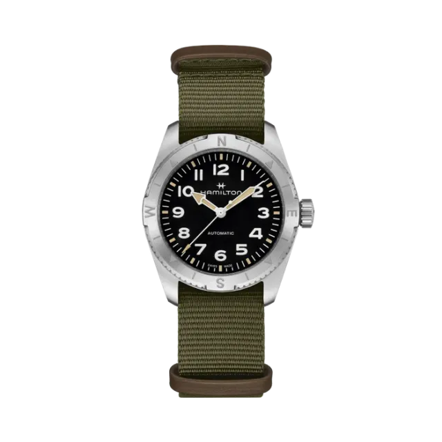Hamilton Khaki Field Expedition Auto, macera tutkunları için tasarlanmış dayanıklı bir saat. 37 mm paslanmaz çelik kasası ve siyah kumlu kadranı ile dikkat çekerken, yeni NATO kayışı konforu artırıyor. Suya dayanıklılığı (10 bar) ve 80 saatlik güç rezervi ile her türlü doğa koşuluna hazır. Pusula tasarımına sahip bu saat sayesinde, maceralarınızda yönünüzü kaybetmeyeceksiniz. Keşfetmeye hazır bir yaşam tarzı için ideal bir aksesuar!