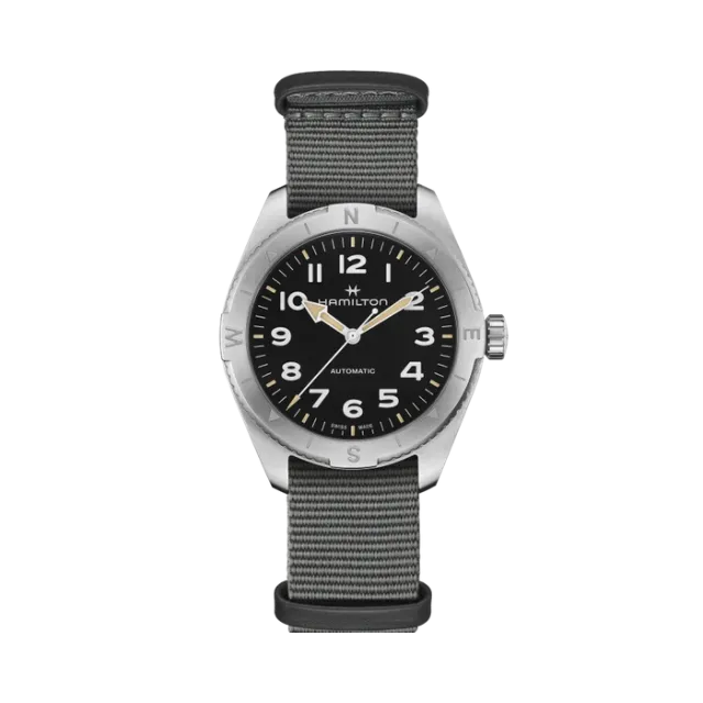 Hamilton'ın Khaki Field Expedition Auto modeli, maceraperestler için tasarlanmış bir arazi saatidir. 41mm paslanmaz çelik kasa, siyah kumlu kadranı ve yeni NATO kayışıyla dış mekanlarda güvenilir bir performans sunar. Pusula tasarımı sayesinde yönünüzü bulmanıza yardımcı olurken, 80 saatlik güç rezervi ve 10 bar su geçirmezlik ile dayanıklılığını taçlandırır. Doğanın tadını çıkarmak için ideal bir seçim!