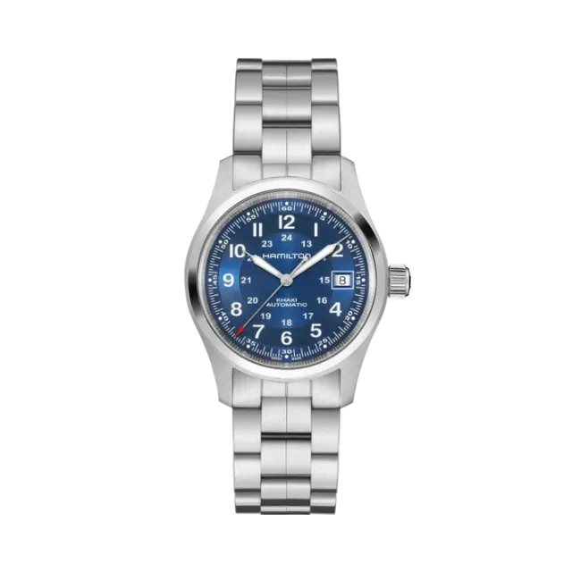 Hamilton'un Khaki Field Auto 38mm saati, askeri miras ve modern tasarımın mükemmel birleşimini sunuyor. Lacivert güneş ışığı kadranı, saat halkasındaki spiral efektle birlikte eşsiz bir doku oluşturuyor. H-10 otomatik kalibre, 80 saate kadar güç rezervi ile olağanüstü performans sağlarken, suya dayanıklılığıyla macera dolu anlara hazır. Bu çok yönlü saat, stil sahibi erkeklerin vazgeçilmezi olacak.