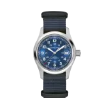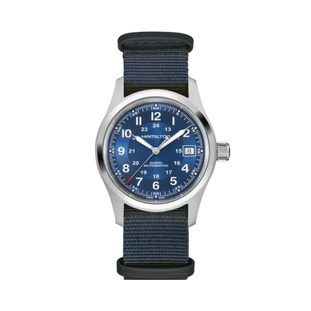 Hamilton'un Khaki Field Auto 38mm, 1960'ların ikonik tasarımına sadık kalarak modern bir yorum sunuyor. İkili otomatik mekanizması H-10 ile 80 saatlik güç rezervi sağlarken, mavi kadranı ve paslanmaz çelik kasası ile karşımıza çıkıyor. Super-LumiNova® kaplamalı ibreleri sayesinde düşük ışıkta bile görünürlük sunan bu saat, askeri köklerinden ilham almakta. Dayanıklı NATO kayışıyla her an aksiyona hazır bir stil sunuyor.