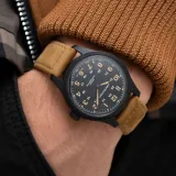 Hamilton Khaki Field Titanium Auto, askeri stilin modern yaşamla buluştuğu bir saat. 42 mm titanyum kasa ve siyah kadranıyla dikkat çeken bu otomatik saat, 80 saatlik güç rezervi ve 10 bar su geçirmezlik özelliği ile maceralara hazır. Hafif olması sayesinde günlük kullanımda konfor sunan Khaki Field, dayanıklılığı ve şıklığı ile her ortamda tarzınızı yansıtacak. Nivachron denge yayı ile doğru zaman sunan bu saat, tüm maceralarınızda güvenilir bir yol arkadaşı.