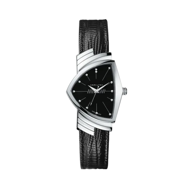 Hamilton'ın ikonik Ventura Quartz, saatin tarihine damga vurmuş bir tasarımdır. 1957'de piyasaya sürülen bu model, dünyanın ilk elektrikli, pilli saati olarak dikkat çekmektedir. Cesur siyah kadranı ve kalkan formu ile Ventura, modern cazibeyi yansıtır. Su geçirmez yapısı ve dayanıklı paslanmaz çelik kasasıyla gündelik kullanım için ideal bir seçenektir. Ayrıca Men in Black filmlerinde de yer alarak kültürel bir simge haline gelmiştir.