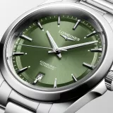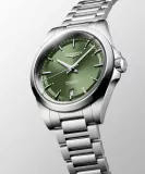 Longines Conquest L3.720.4.02.6, paslanmaz çelik kasa ve kayış ile şık bir otomatik saat. Pastel yeşili kadranı, Swiss Super-LumiNova® ile ışıldar. 72 saat güç rezervli ve 10 bar suya dayanıklı bu model, sportif zarafetiyle günlük kullanıma uygundur.