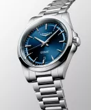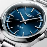 Longines Conquest L3.830.4.92.6 otomatik saat, 41 mm paslanmaz çelik kasası ve mavi gün ışını kadranı ile zarif ve dayanıklı tasarımı bir araya getirir. Swiss Super-LumiNova® işlemeli ibreler, 72 saat güç rezervi ve 10 bar su geçirmezlik özellikleriyle gün boyu şıklık ve performans sunar.