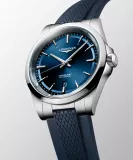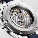 Longines Conquest L3.830.4.92.9, 41 mm paslanmaz çelik kasa ve mavi güneş ışını kadranıyla şıklığı ve dayanıklılığı bir arada sunar. 72 saat güç rezervli otomatik mekanizması, Swiss Super-LumiNova® ibreleri ve 10 bar su geçirmezlik özelliğiyle üstün performans sağlar. Kauçuk kayışı ince ayar sistemli çift güvenlikli katlanır toka ile konforludur.