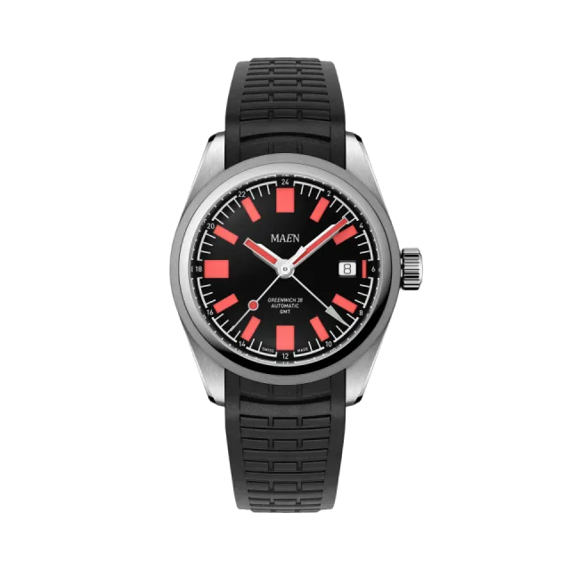 Maen Greenwich 38 GMT Black Enamel MGG03
