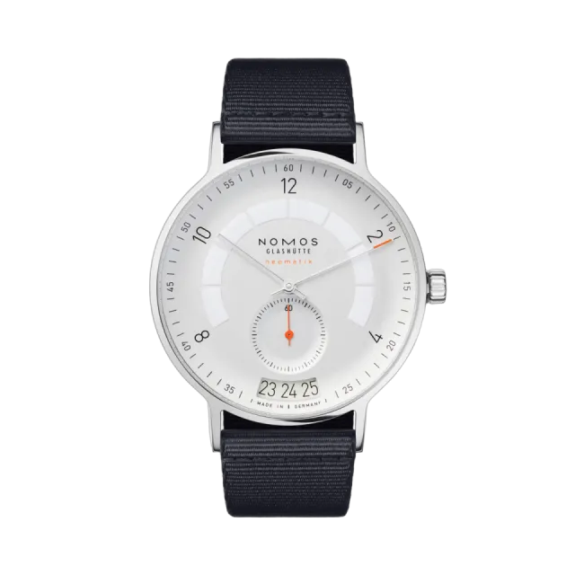 NOMOS Glashütte'nin Autobahn neomatik 41 date modeli, zarif tasarımı ve yüksek teknoloji ile dikkat çekiyor. 41 mm çapındaki paslanmaz çelik kasası, anti-reflektif kaplamalı kubbe safir cam ile korunuyor. Otomatik mekanizması, 42 saate kadar güç rezervi sunarken, beyaz gümüş kaplama kadranı ve mavi-siyah dokuma kayışı ile şıklığı tamamlıyor. Suya dayanıklılığı sayesinde 10 atm derinlikte yüzme imkanı sunan bu saat, her anınıza zarafet katacak.