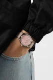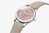 NOMOS Glashütte'nin Club Campus full rose modeli, modern tasarımı ve zarif pembe kadranı ile dikkat çekiyor. 36 mm çapındaki paslanmaz çelik kasa, günlük kullanıma uygun sağlamlık sunarken, 10 atm su geçirmezlik özelliği ile de su aktivitelerine elverişli. Manuel kurmalı mekanizması ve Superluminova ile donatılmış kadranı, düşük ışıkta bile mükemmel okunabilirlik sağlıyor. Vegan velour kayışı, bu genç ve dinamik saatin şıklığını tamamlıyor.